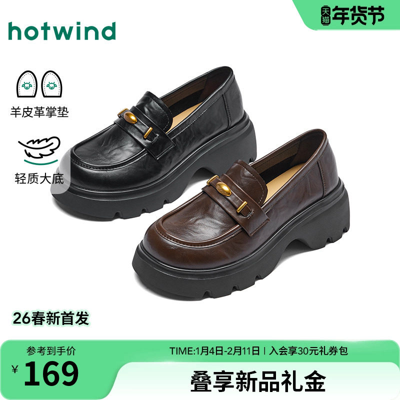 热风黑色小皮鞋女款2026年春季新款厚底增高乐福鞋通勤百搭女鞋子
