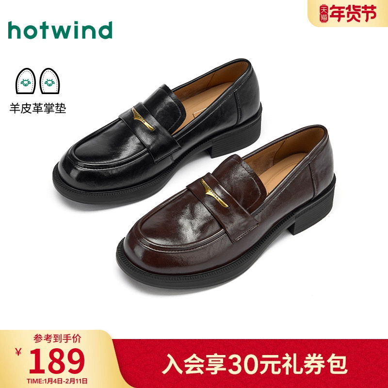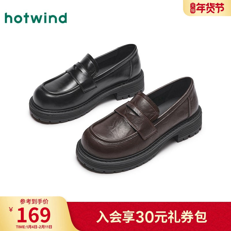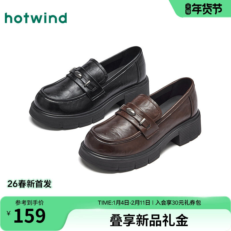 热风厚底乐福鞋女2026年春季新款英伦风百搭小皮鞋黑色粗跟女鞋子