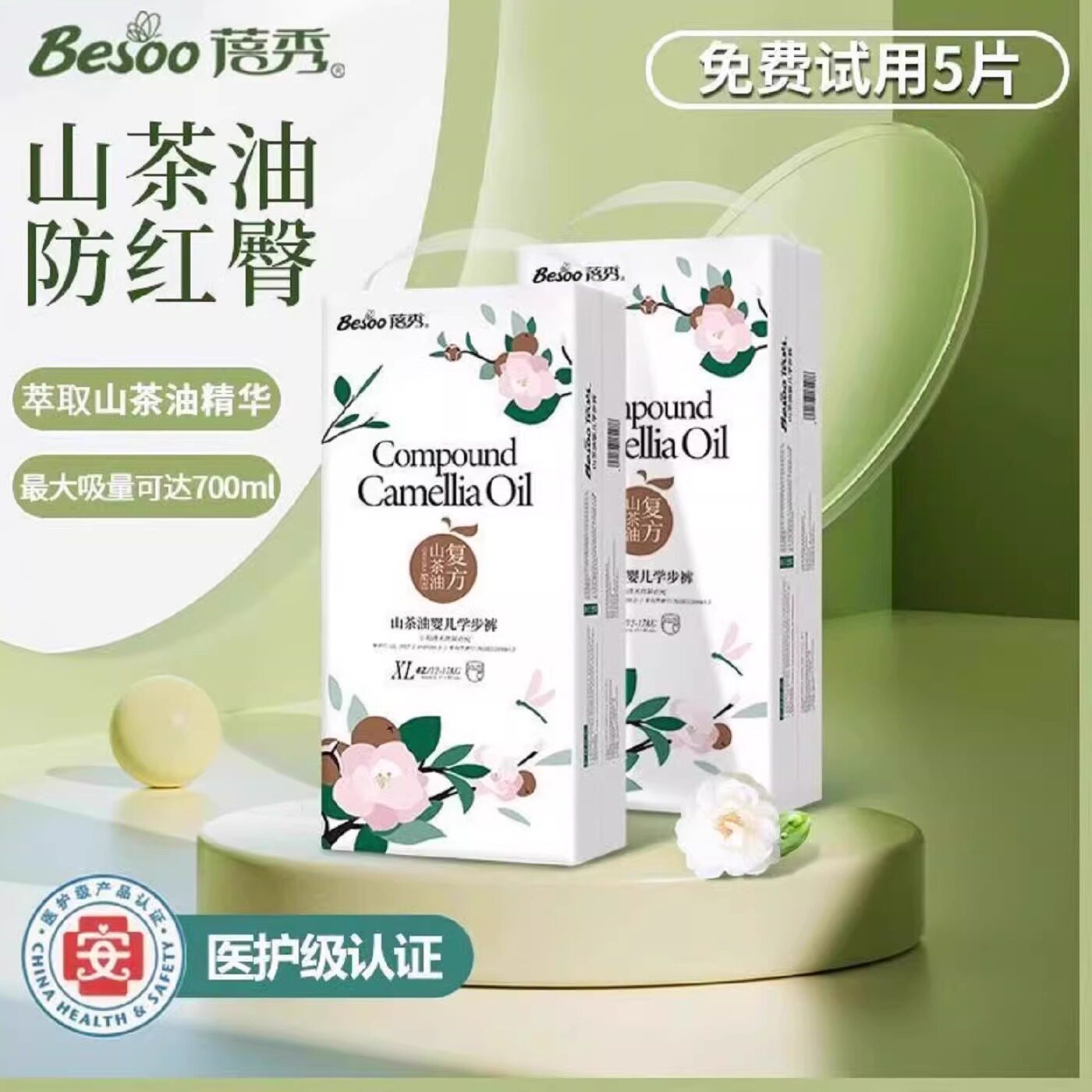 蓓秀山茶油婴儿国产纸尿裤秋冬季爽透气拉拉裤尿片女宝专用尿不湿