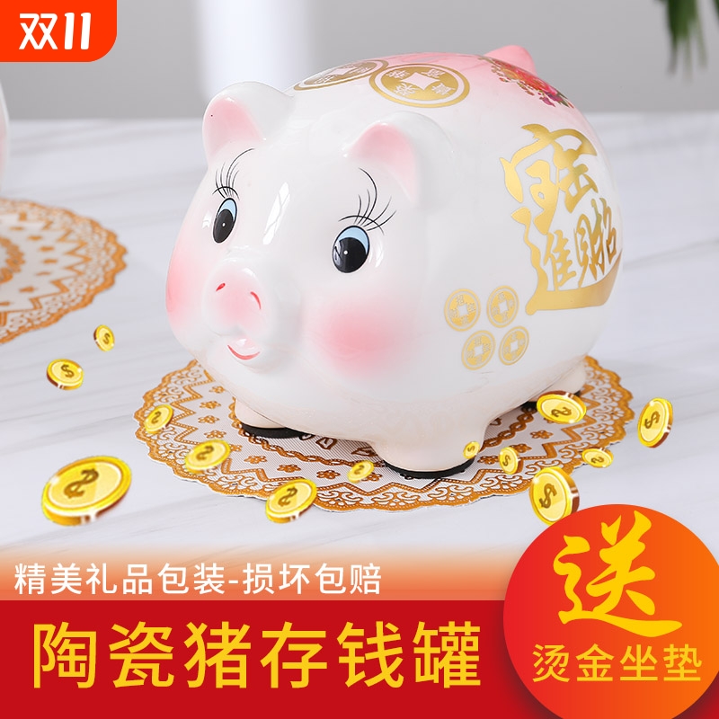金猪存钱罐陶瓷小猪可爱猪猪大号超大容量招财储蓄储钱罐可存可取