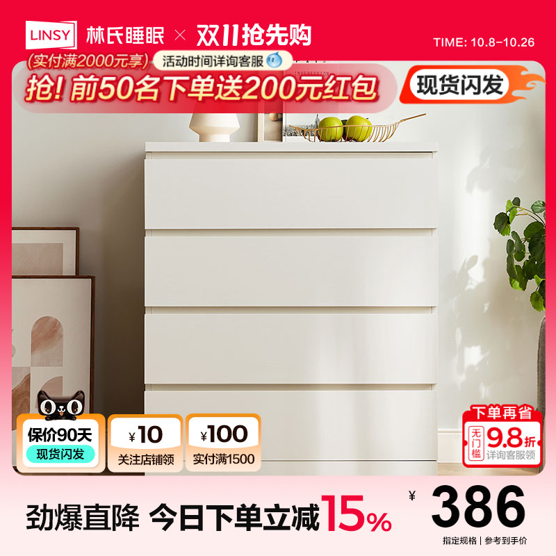林氏实木色客厅边柜白色抽屉柜收纳柜储物柜卧室四五斗柜政府补贴