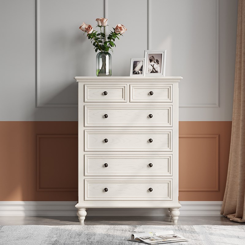 萨洛美式实木斗柜五层六抽屉法式奶油白色小户型家具卧室电视机柜
