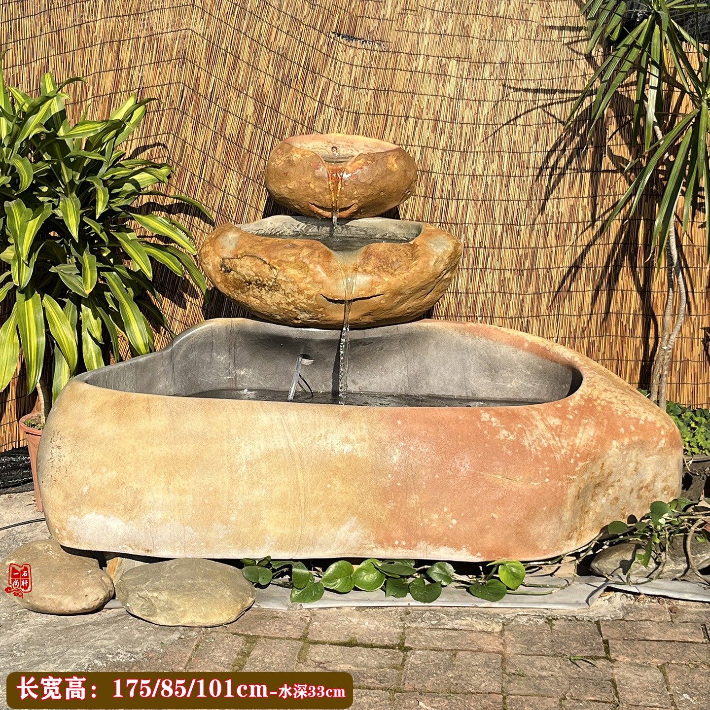 天然石头超大鱼缸叠层流水摆件原石鱼池花园室外庭院石缸造景石盆