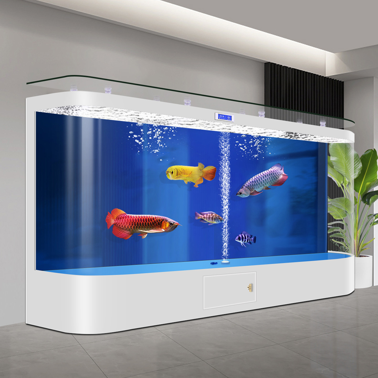 2025新款超大型公司客厅家用鱼缸一体热弯玻璃智能落地全自动循环