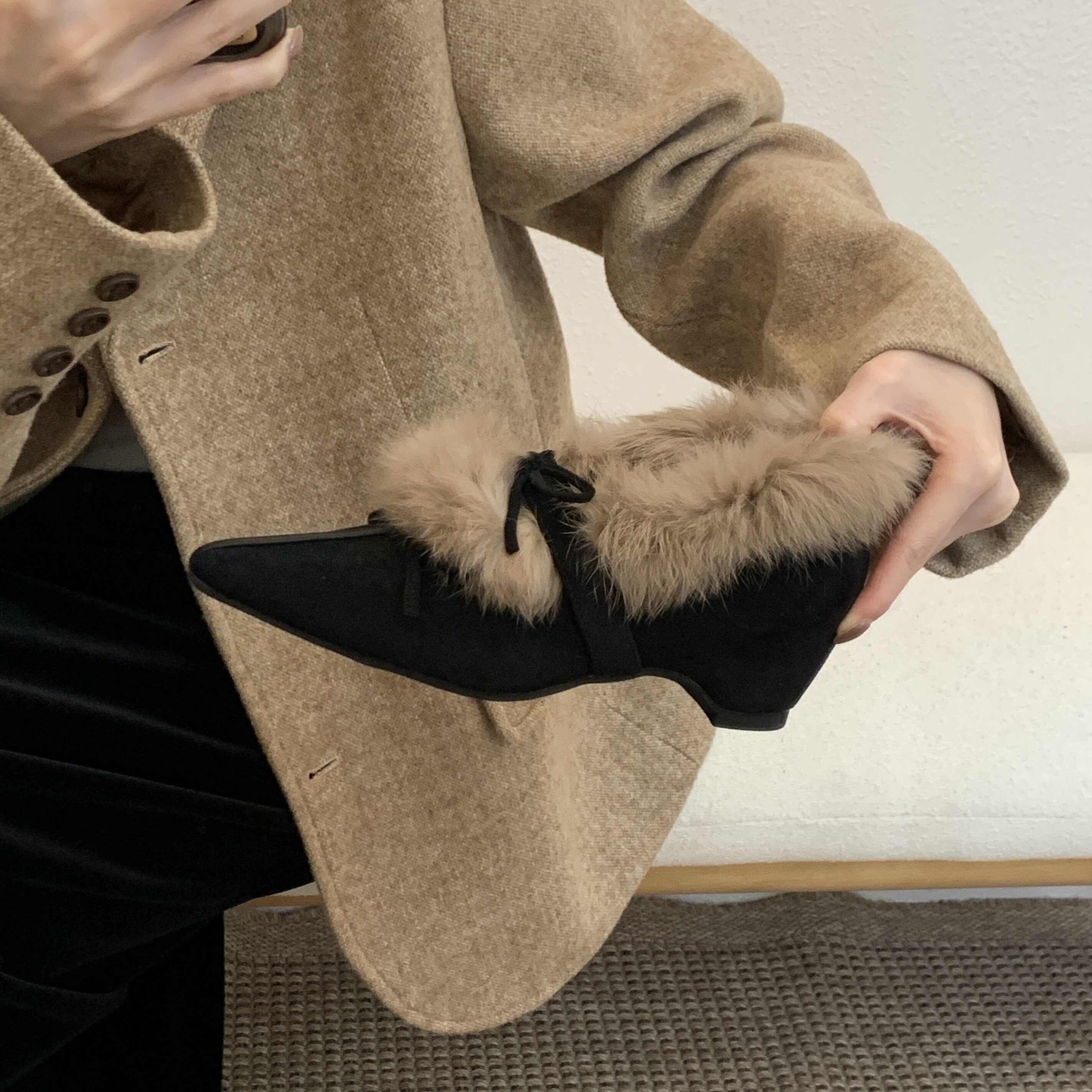 杨超越同款!绑带芭蕾玛丽珍毛毛鞋女2025秋冬新款加绒平底棉单鞋