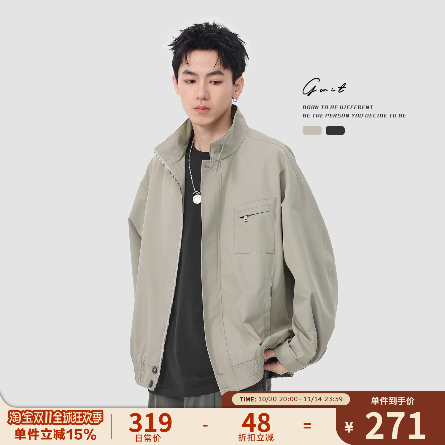 GWIT 美式复古cleanfit春秋棒球服短款休闲夹克上衣工装外套男士