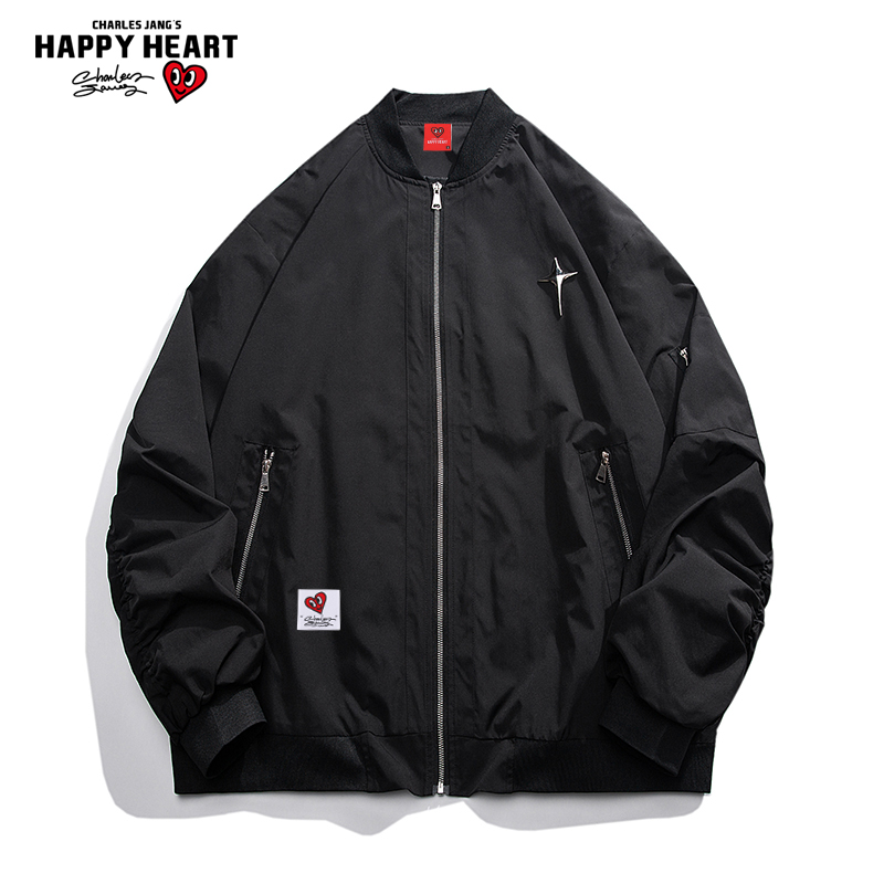 查尔斯桃心 飞行员夹克男复古潮牌美式街头宽松bf春秋棒球服外套