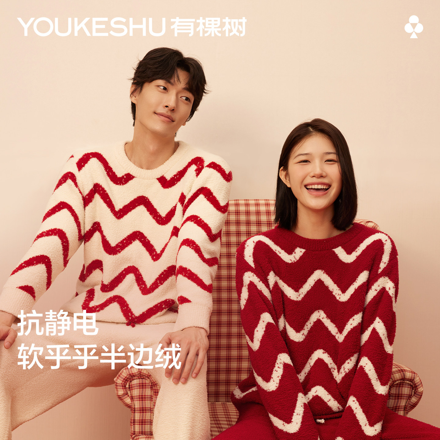 【代言人成毅同款】有棵树半边绒情侣红睡衣本命年冬防螨家居服女
