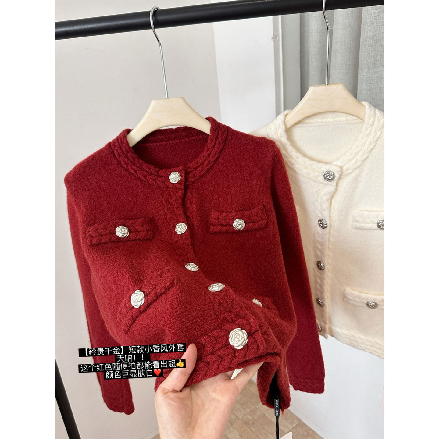 - 短款加厚毛衣外套 女