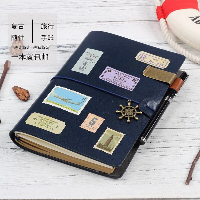 笔记本文具记事本绑带布纹手帐本子活页A6手记手账本小清新套装