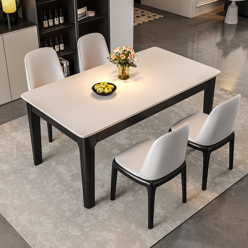 实木岩板餐桌现代简约哑光饭桌家用小户型意式极简长方形岩板餐桌