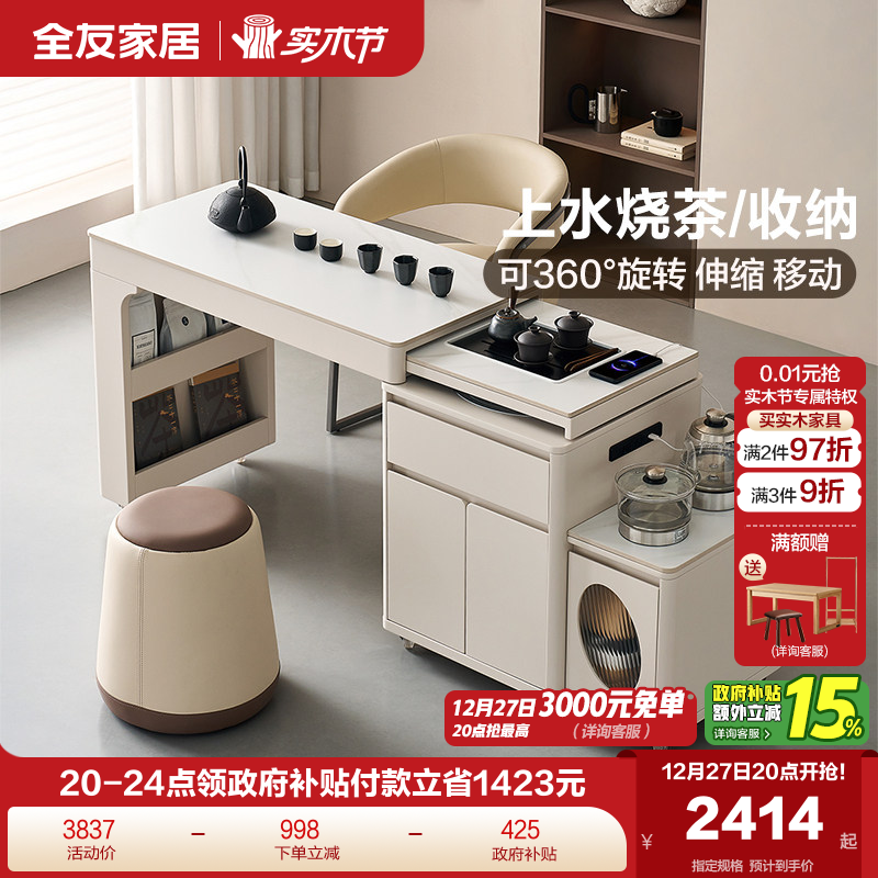 全友家居2025新款现代简约客厅可移动伸缩多功能长方形岩板茶几桌