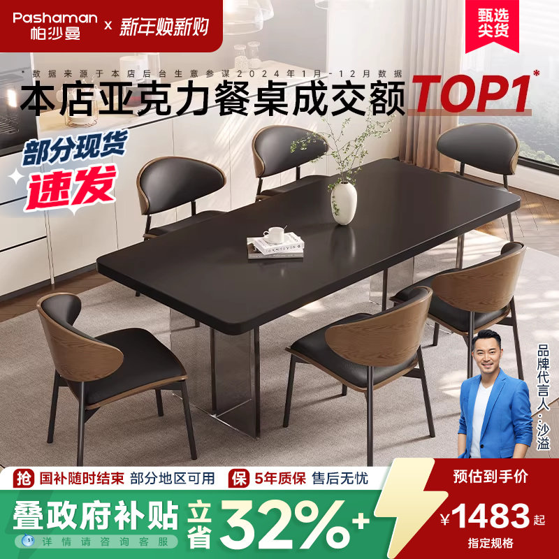 政府补贴帕沙曼全托岩板餐桌轻奢现代简约亚克力悬浮长方形饭桌子