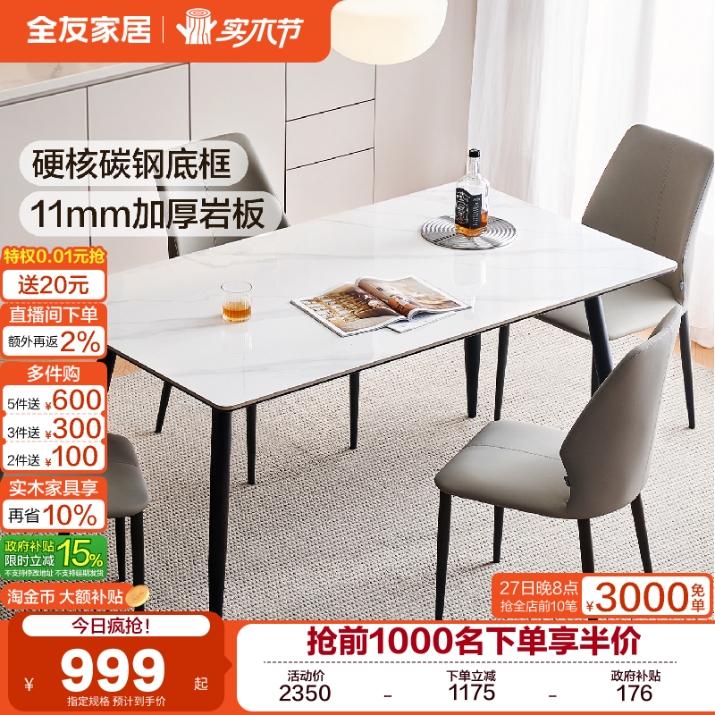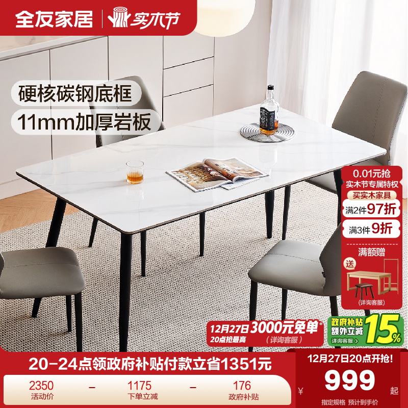 全友家居2025新款现代简约小户型岩板餐桌客厅家用长方形吃饭桌子