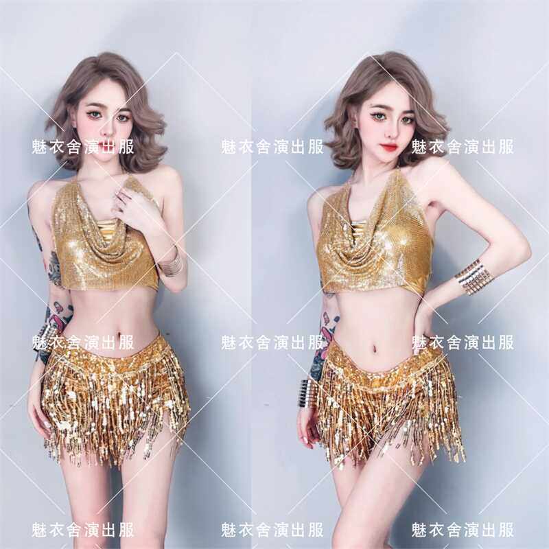 新款夜店酒吧dj领舞服ds演出服性感电音节蹦迪金色亮片舞蹈表演服