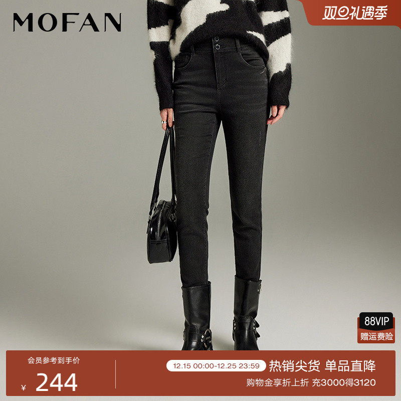 时尚黑色高腰牛仔长裤女MOFAN摩凡2025冬新款百搭休闲显瘦铅笔裤