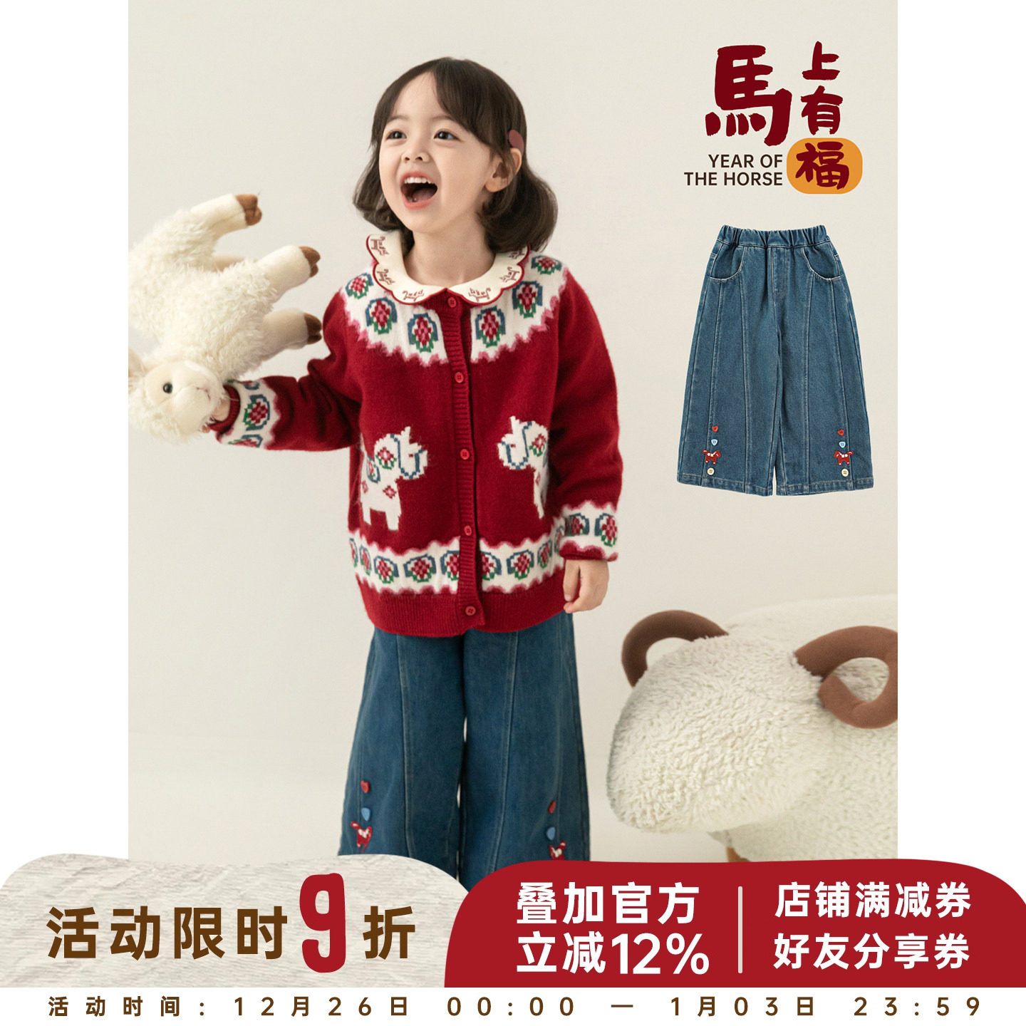 幼悠女童2025冬季新款大喇叭阔腿牛仔裤时尚保暖宽松显瘦儿童长裤