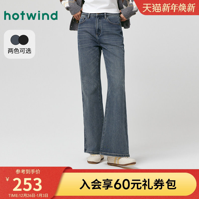 热风女士喇叭裤2025年冬季新款时尚微喇修身显瘦牛仔裤显腿长裤子
