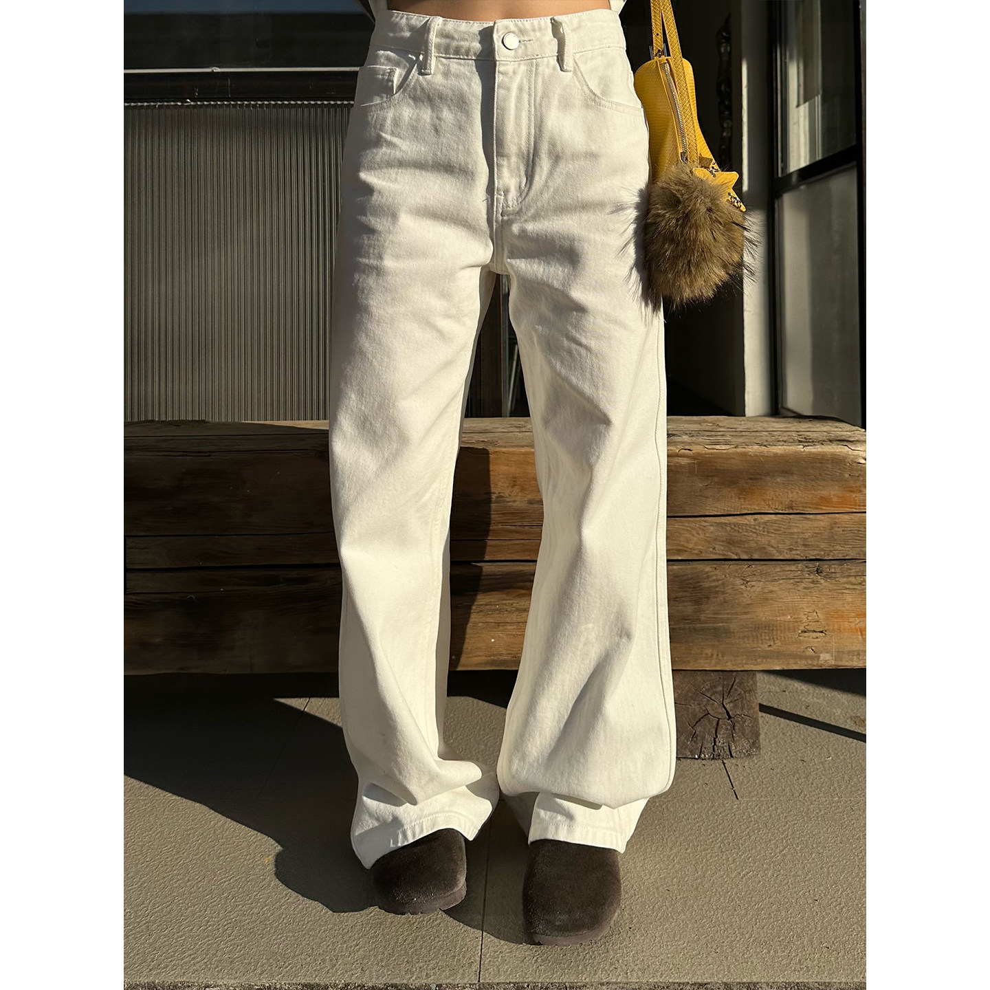 Our2【直筒小白裤】2025秋冬新款时尚百搭设计感显瘦白牛仔长裤女