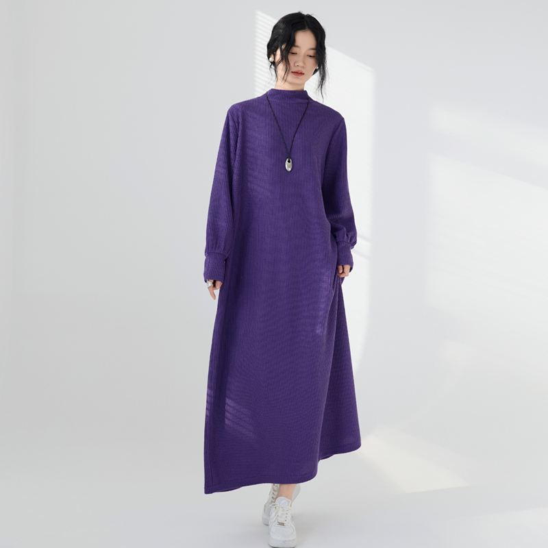 秒!原创2025早秋文艺高领长裙女慵懒风气质宽松针织袍子连衣裙
