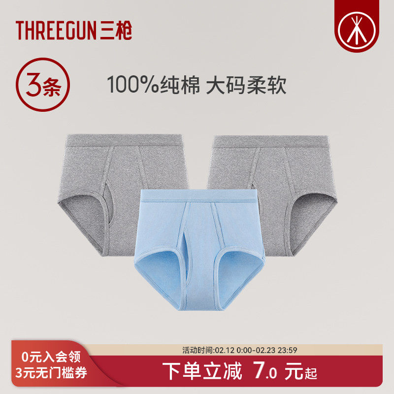 [3条]三枪内裤男纯棉三角男士内裤抗菌柔软透气中老年秋冬不夹臀