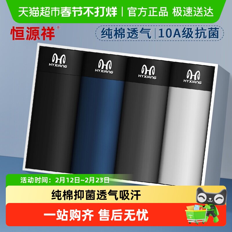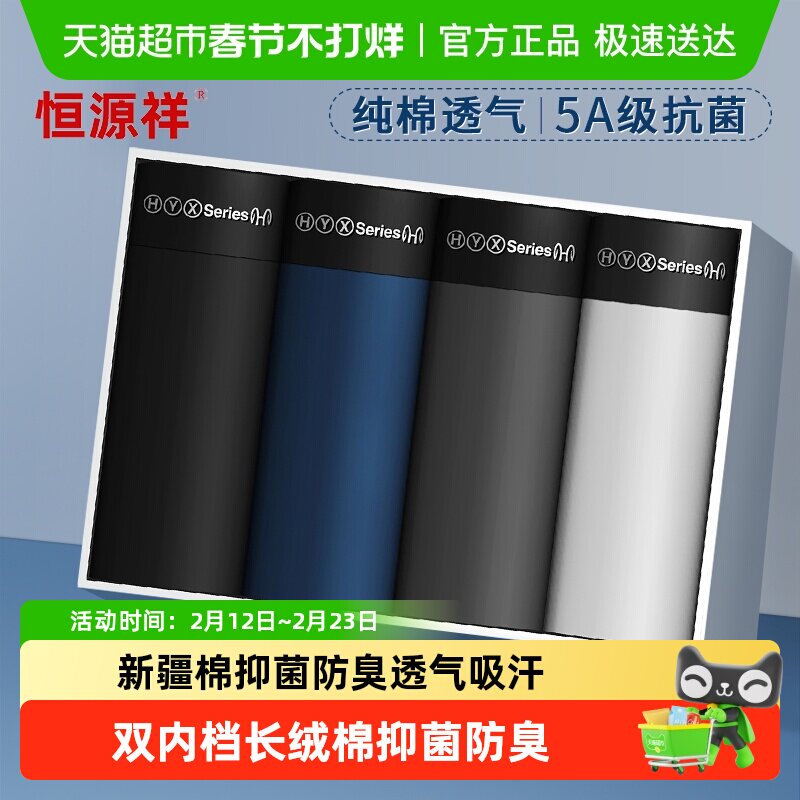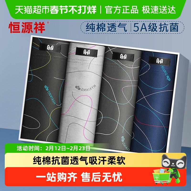 恒源祥男士内裤男纯棉抗菌平角裤青年男生四角短裤头透气大码裤衩