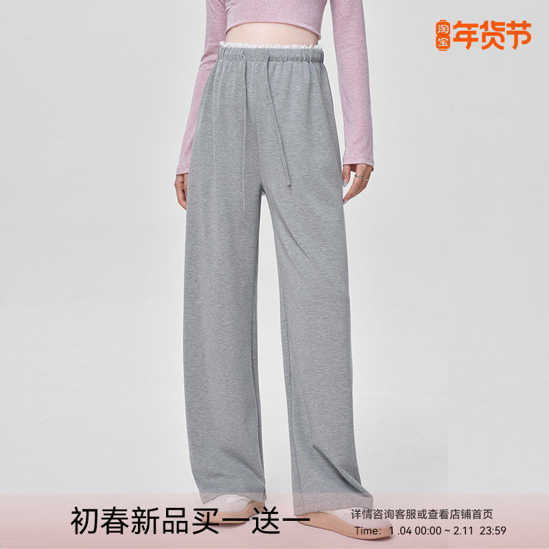 猫人孕妇裤子春秋款无托腹外穿阔腿裤抽绳显瘦休闲直筒裤大码春装