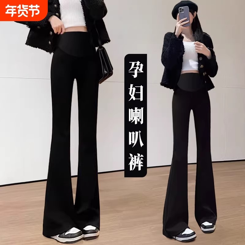 微喇孕妇裤春秋季薄款喇叭裤女大码爆款黑色托腹春装孕妇装打底裤