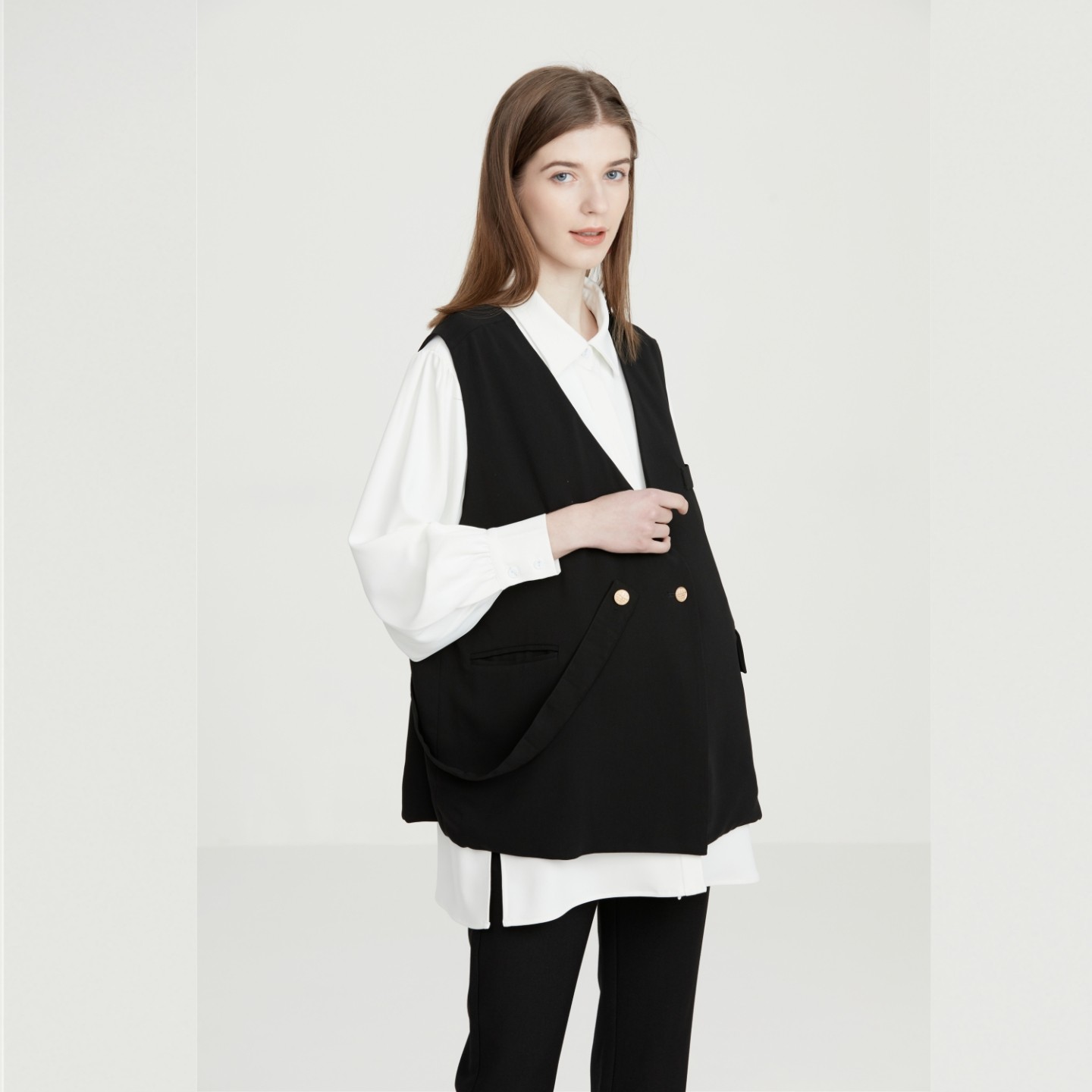 商务孕妇通勤职业装马甲套装大码胖mm孕妇装春装2026新款马甲上衣