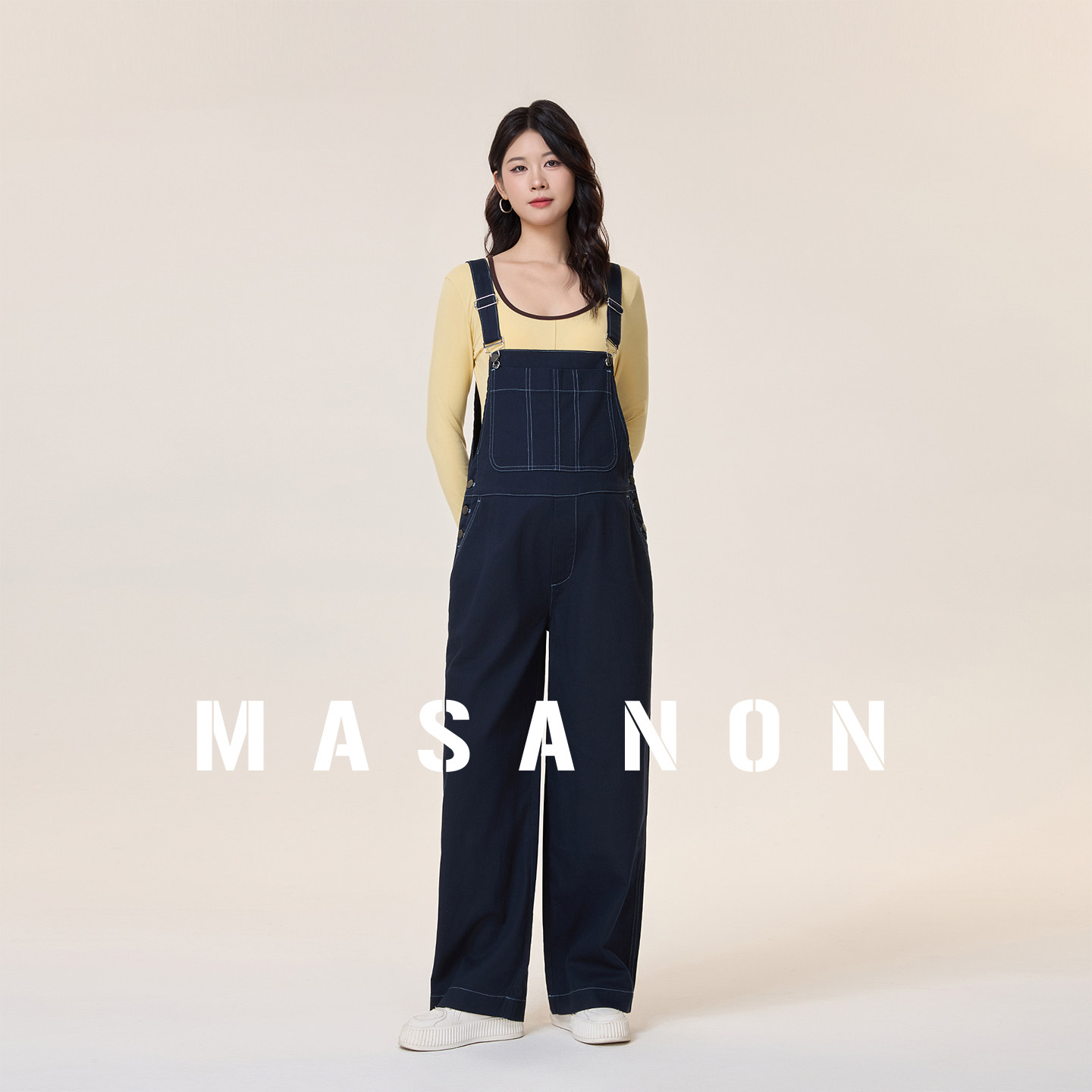 MASANON孕妇牛仔背带裤春装2026新款大码高级纯棉阔腿裤秋冬外穿