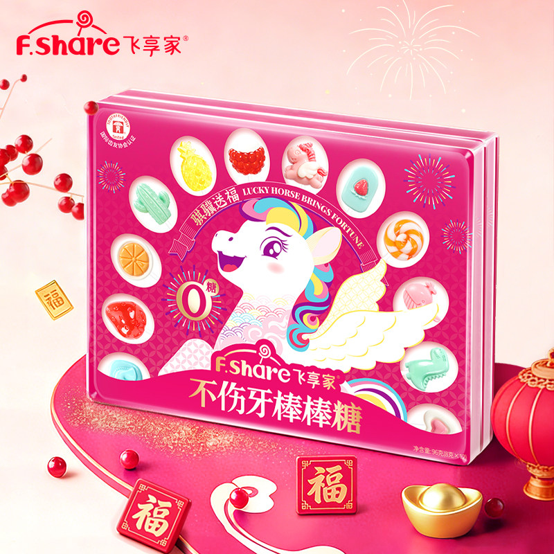 飞享家马年新春糖果儿童无糖棒棒糖木糖醇儿童零食无糖棒棒糖礼盒