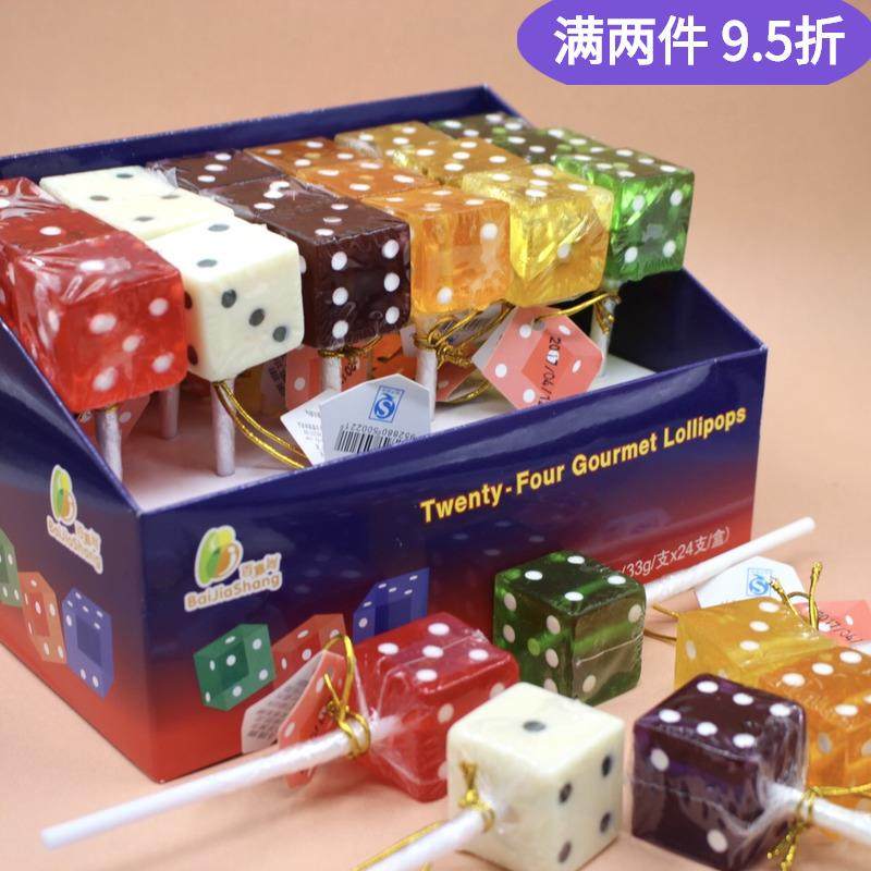 百嘉尚可爱造型创意水果味糖果方形色子骰子糖24支棒棒糖礼盒零食