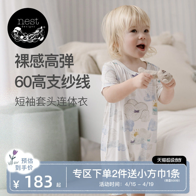Nest Designs婴儿套头连体衣春夏宝宝短袖衣服哈衣爬服儿童家居服