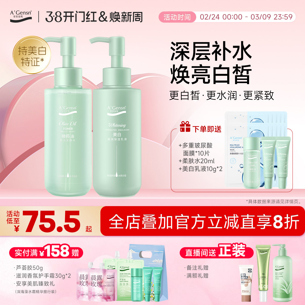 安安金纯橄榄油水活柔肤水美白保湿乳液护肤品套装正品补水学生女