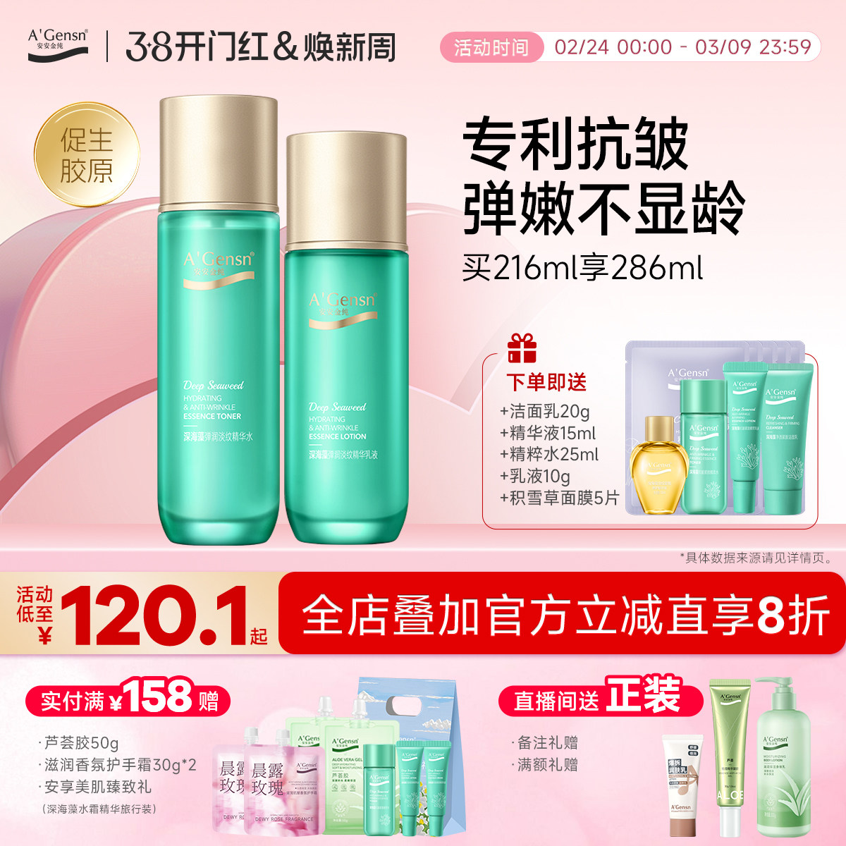 安安金纯深海藻弹润淡纹抗皱水乳霜保湿紧致精华护肤套装官方旗舰