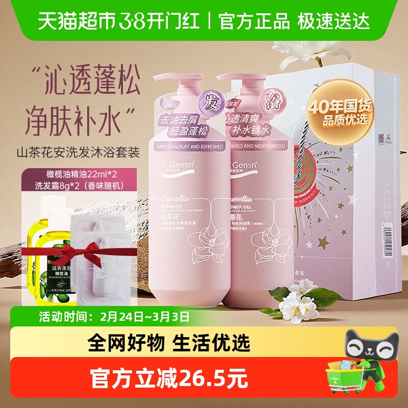 安安金纯山茶花洗发水洗沐套装750g去屑柔顺控油蓬松洗发露沐浴乳