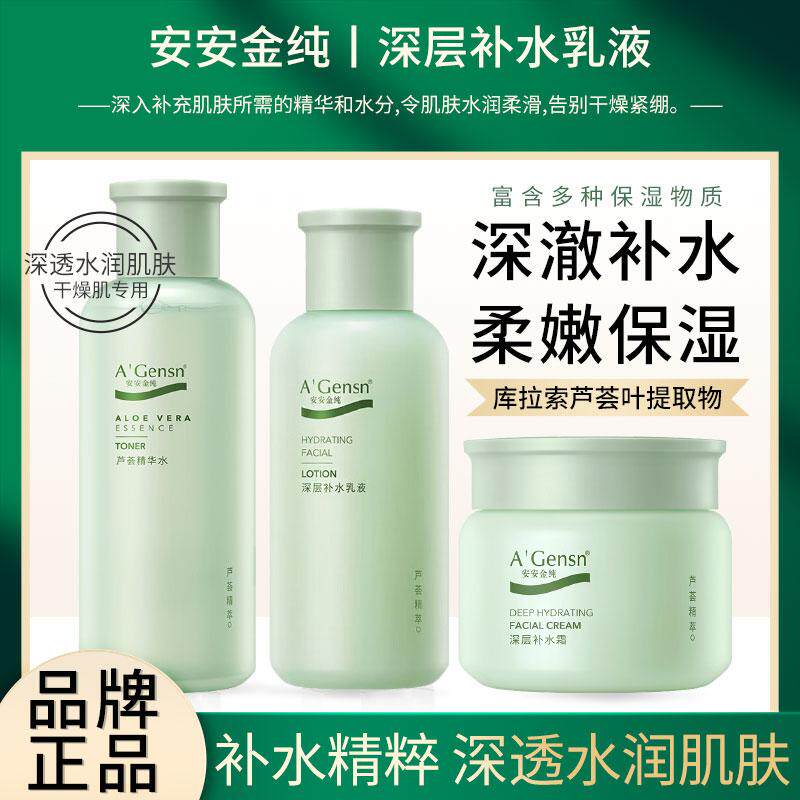 安安金纯芦荟深层补水套装洁面膏爽肤水精华水保湿乳霜补水霜乳液