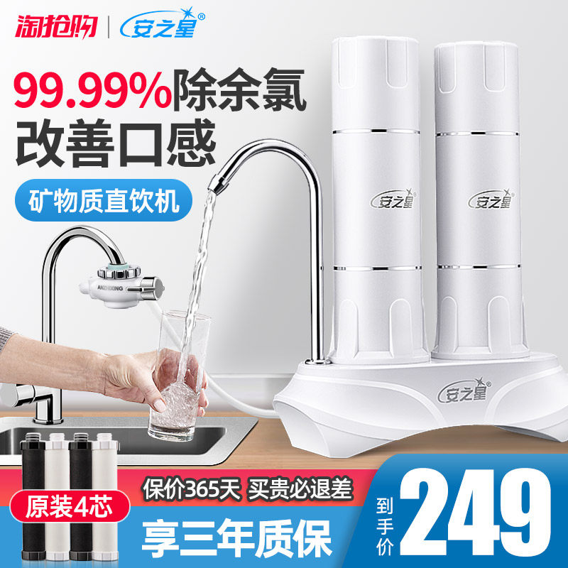 安之星双级台式净水器水龙头过滤器厨房直饮自来水净水机除氯除菌