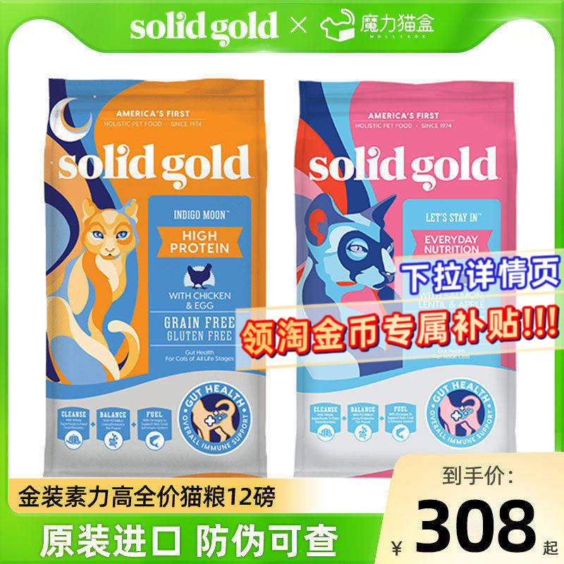 素力高猫粮成幼猫进口Solid Gold金装金素鸡肉生鲜美毛三文鱼12磅