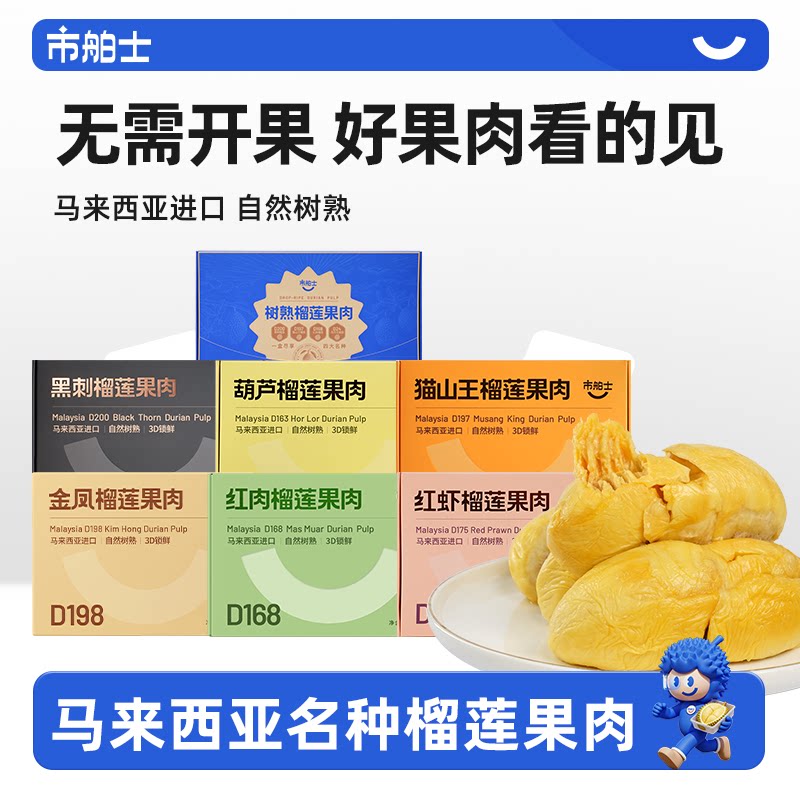 市舶士猫山王金凤当季新鲜榴莲果肉自然树熟马来西亚进口冷冻400g