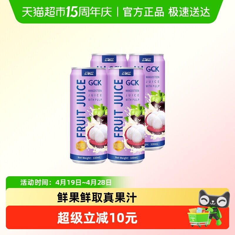 【进口】27000GCK越南100%山竹果汁330ml*4瓶果肉果汁饮料