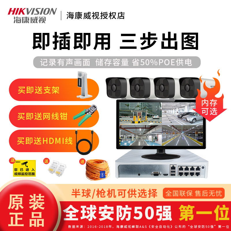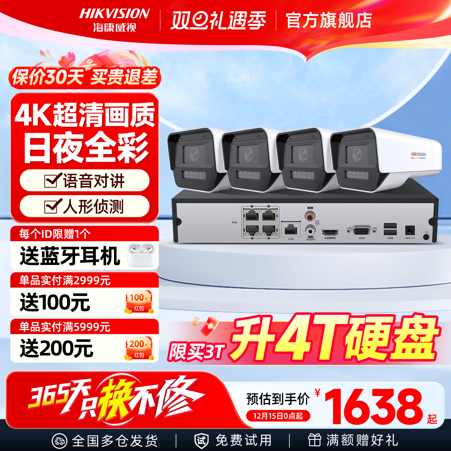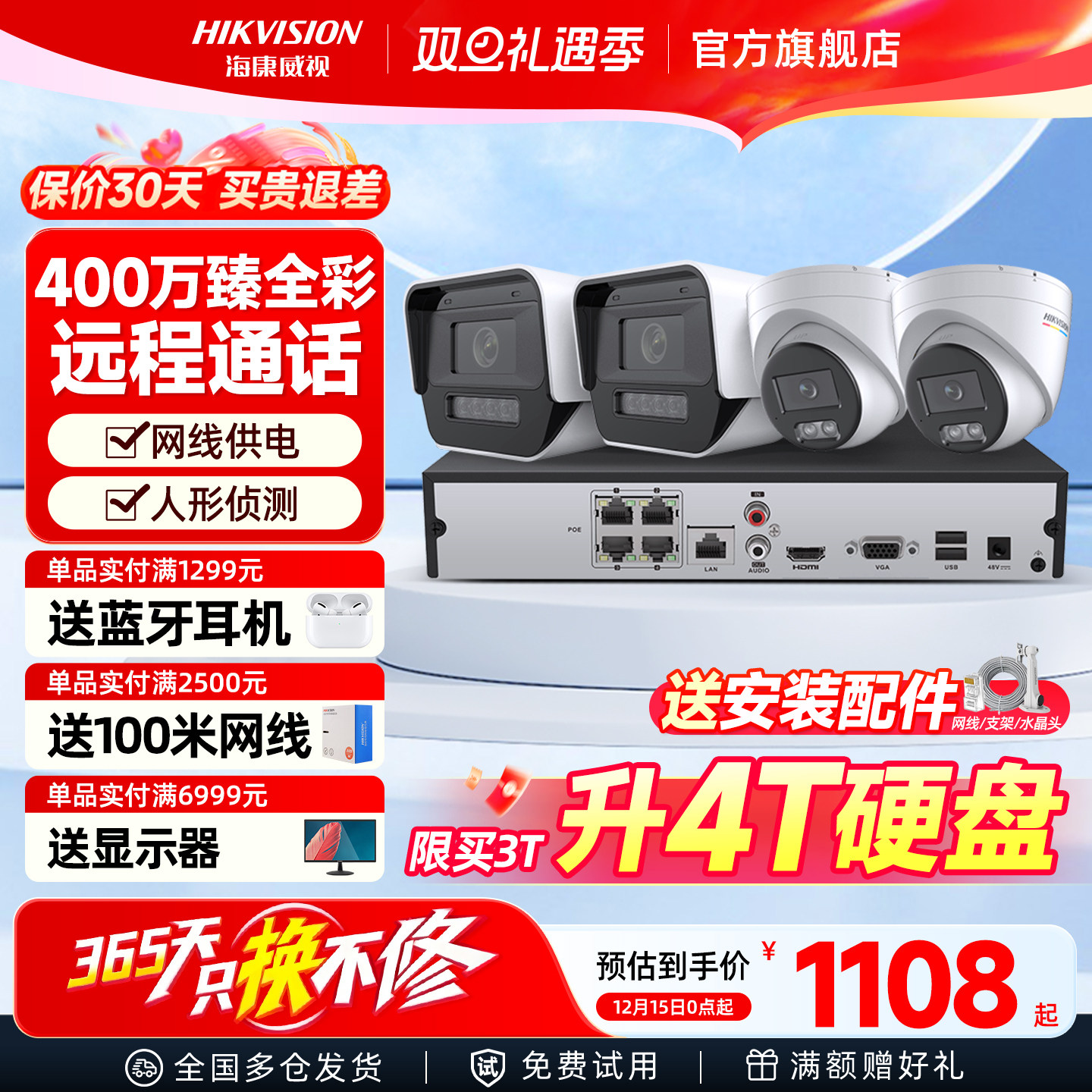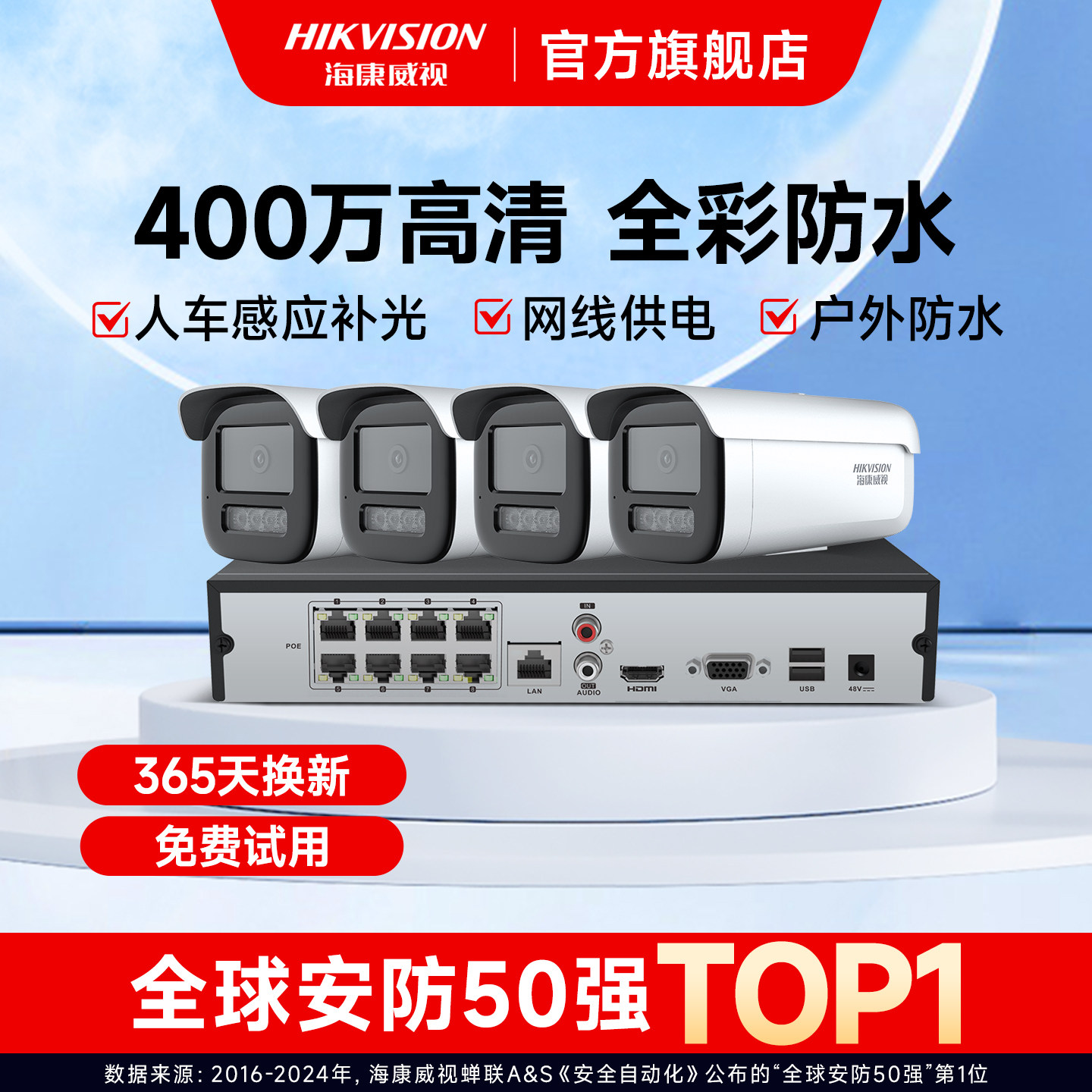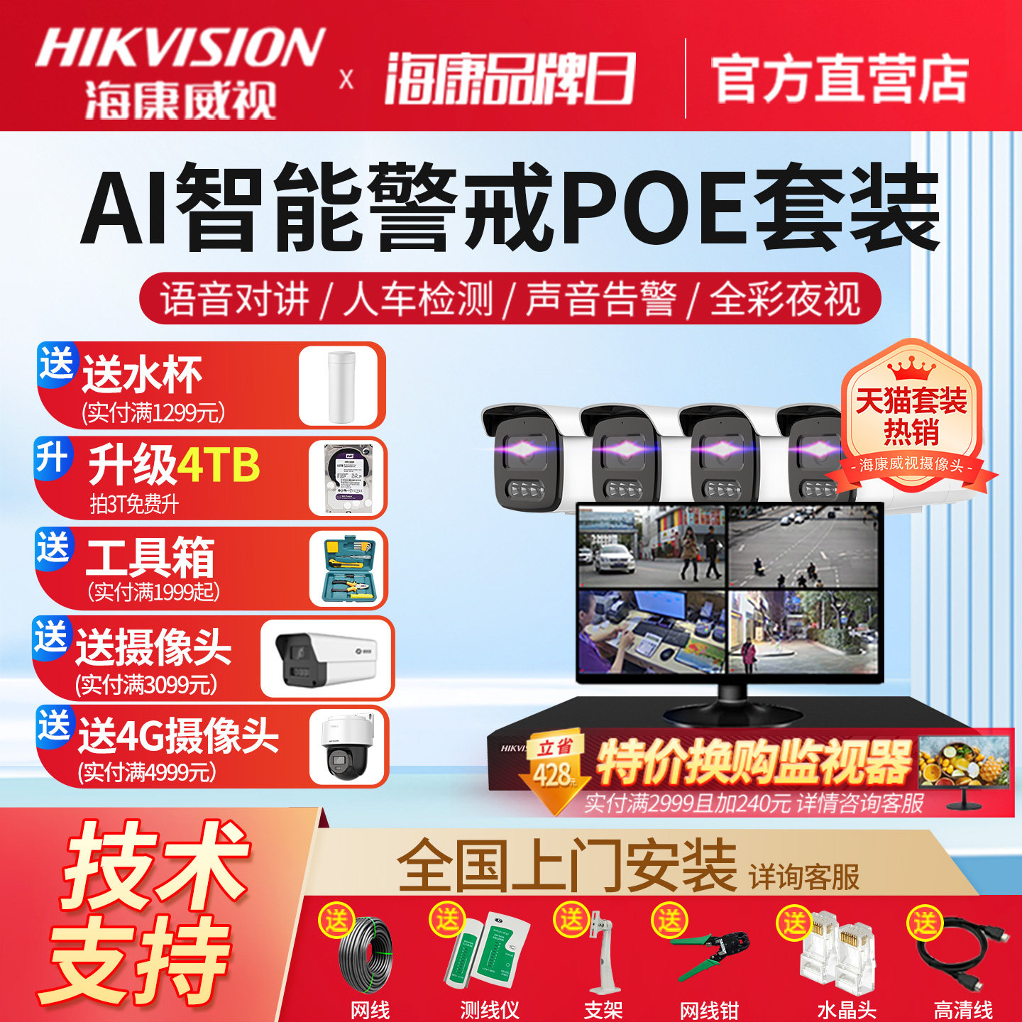 海康威视官方旗舰摄影头摄像poe监控器设备高清全套套装全彩室外