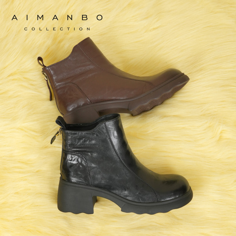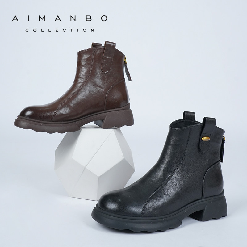 漫步佳人2025冬季新款复古时装靴超软羊皮靴显瘦厚底粗高跟短靴子