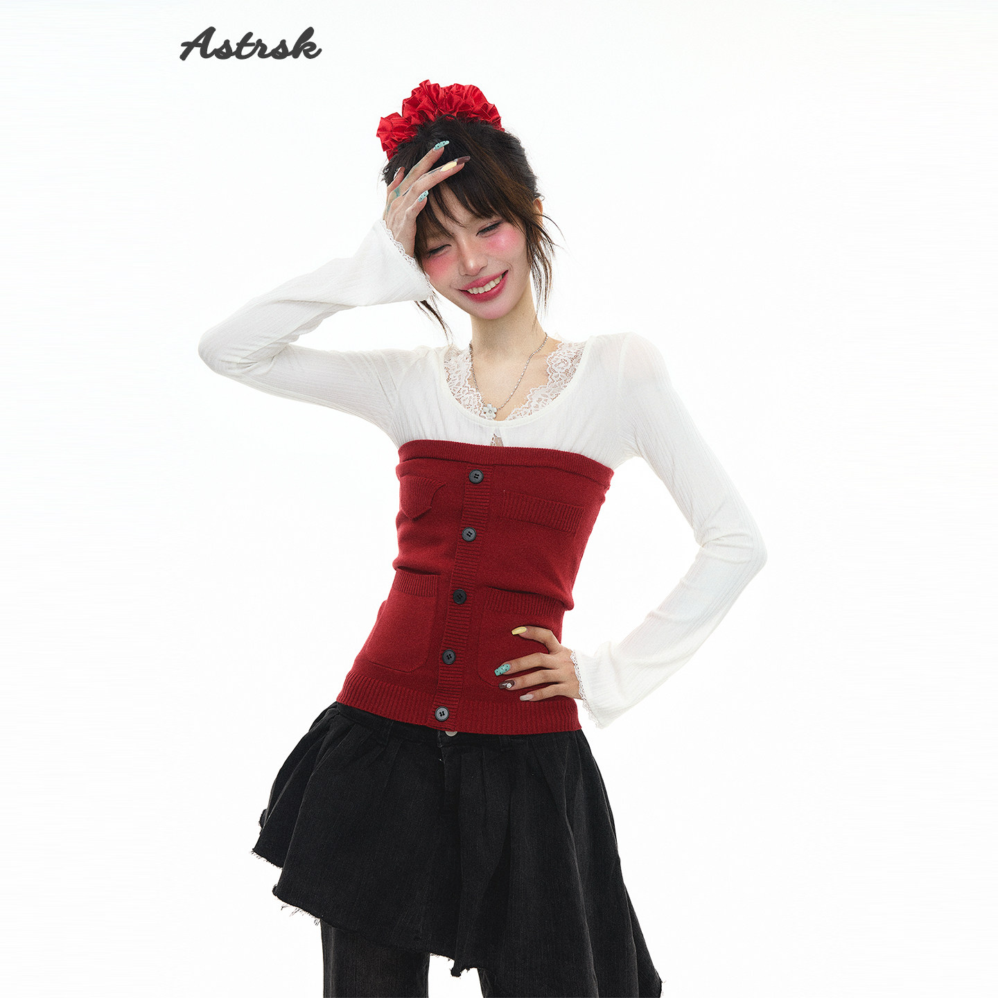 ASTRSK韩系辣妹抹胸背心女针织衫内搭复古红气质紧身打底外穿上衣
