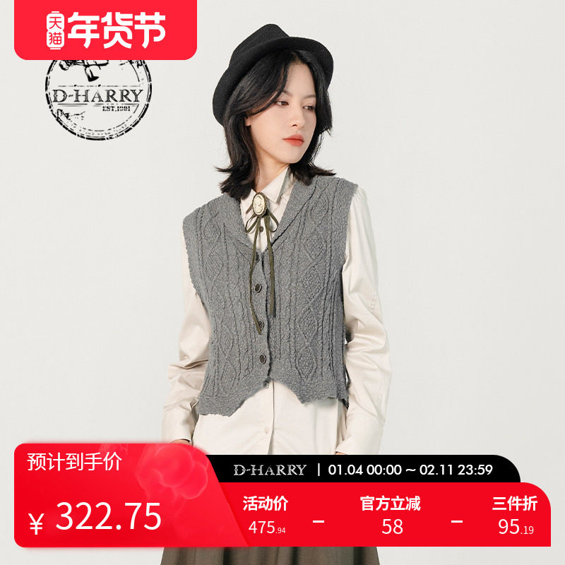 D-HARRY/迪哈利深灰色优雅无袖背心女针织百搭马甲DH231C95896D