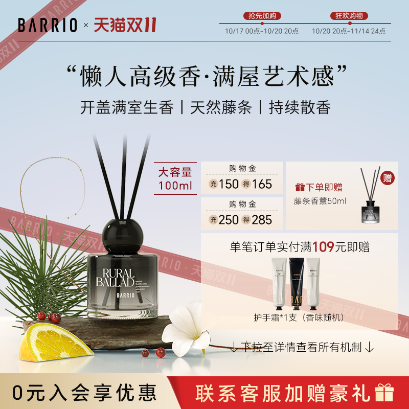 【双11立即抢购】Rituals怡式珍藏无火藤条香薰100ml挥发扩香礼物