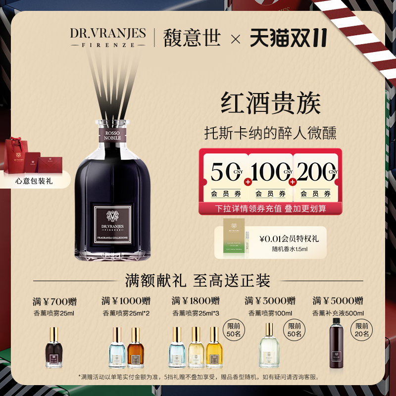 【双11狂欢季】Dr.Vranjes馥意世红酒贵族无火藤条香薰香氛送礼