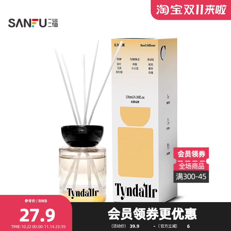 三福丁达尔系列藤条香薰130ml 家居无火扩香香氛摆件 843083