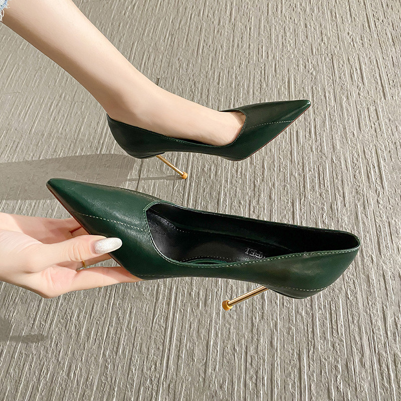 高跟鞋女秋冬2025年新款细跟上班工作鞋黑色职业软皮鞋不累脚洋气