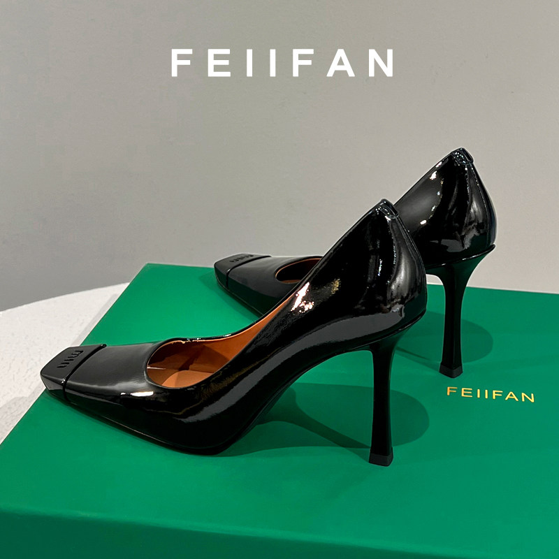 黑色高跟鞋2025秋冬新款女士细跟不累脚法式绝美气质漆皮方头单鞋